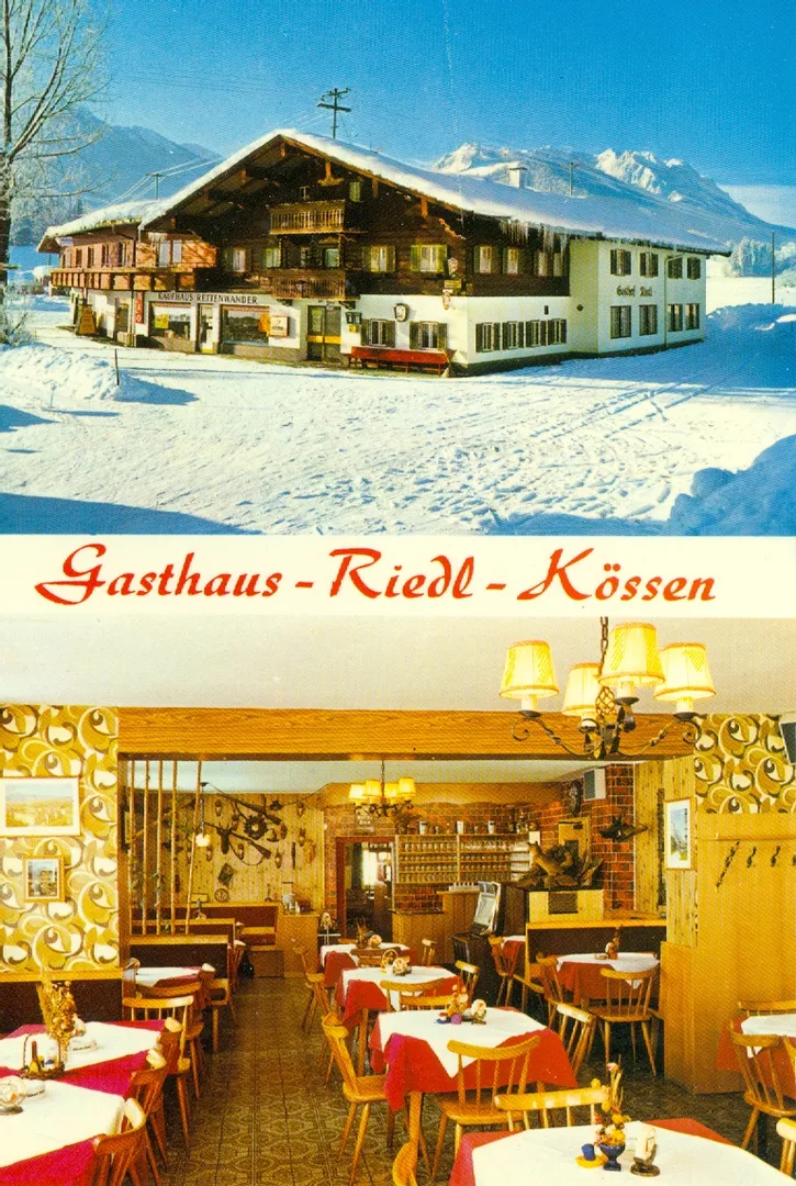 Vor über 100 Jahren war der Riedlhof noch ein Schulhaus. Im Kössener Heimatbuch steht dazu: „1876 erwarb die Gemeinde einen Raum in einem zentral gelegenen Haus, den nachmaligen Gasthof ‚Riedl‘, und richtete dort die Volksschule Niederbichl ein. Bis zum Bau des neuen Schulgebäudes im Jahre 1902 wurden die Kinder aus einigen Kössener Ortsteilen hier unterrichtet.“
