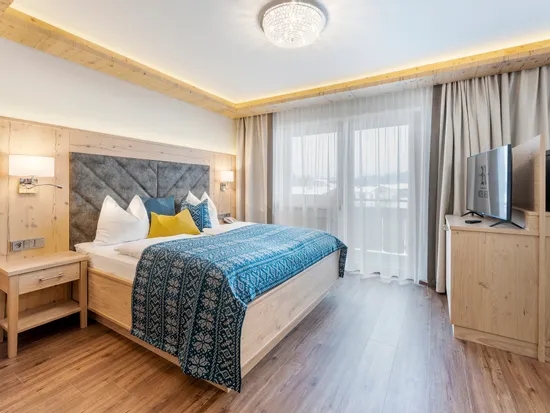 Our Tirol hotel rooms offer a wide selection of cozy room categories, from comfortable double rooms to spacious suites. Enjoy the magnificent view of the Kaiser Mountains from our suites or relax in the lovingly furnished junior suites. Each of our hotel rooms in Tyrol is lovingly designed and ensures an unforgettable vacation experience in Kaiserwinkl. Whether for a short break or a longer stay - the perfect hotel room in Tyrol is waiting for you.